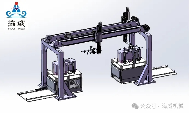 雙工位片料拆垛機:雙工位片料拆垛機是多工位衝壓機械手係統的前端設備。它能夠高效地將堆疊的片料進行分離和拆垛操作,為後續的加工流程提供穩定的片料供應。雙工位的設計可以提高工作效率,當一個工位在進行拆垛作業時,另一個工位可以進行準備工作,實現連續不間斷的供料。